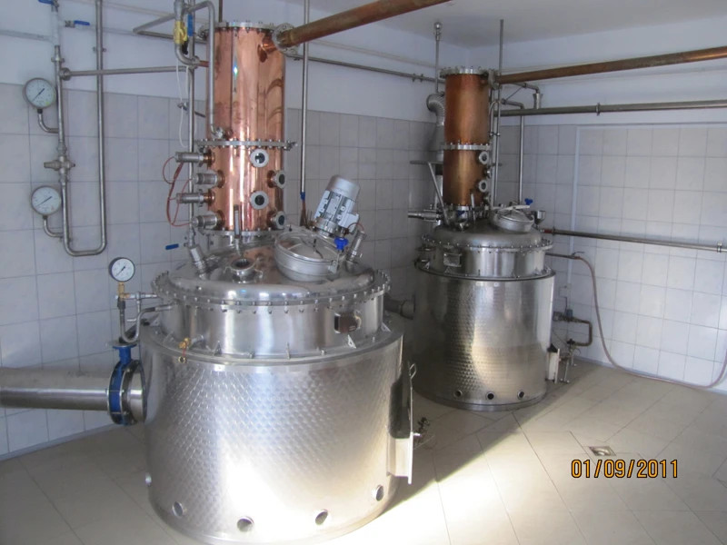 Pálinkafőzdénk két, egyenként 320 és 550 liter töltőkapacitású egyfázisú főzővel rendelkezik.